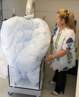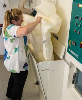 Aus diesem Grund haben wir in der Region eine der noch wenigen Reinigungsanlagen für Daunen und Federn.